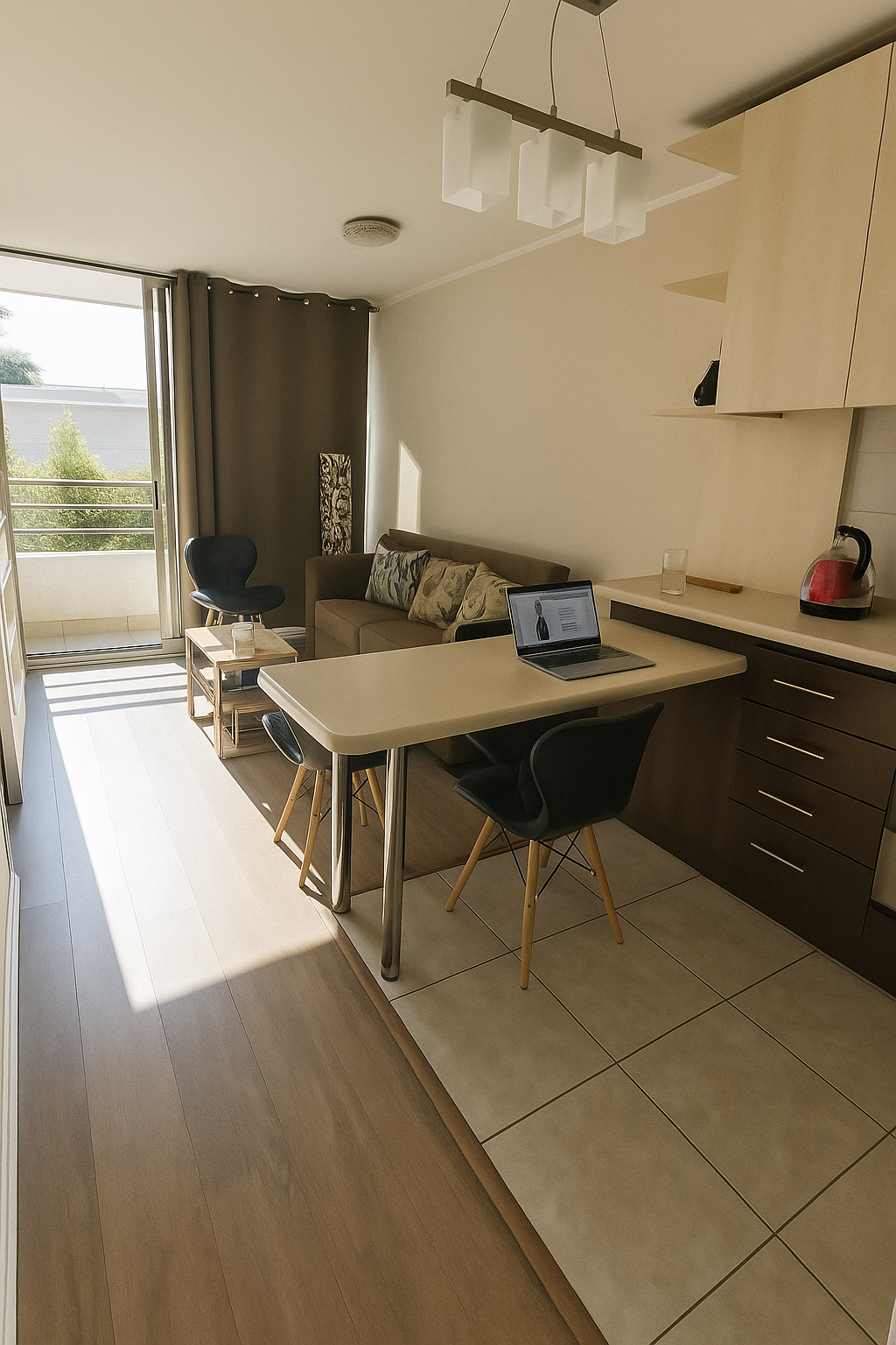 Pisos: cerámica en cocina y baño; piso flotante en living–comedor y dormitorio